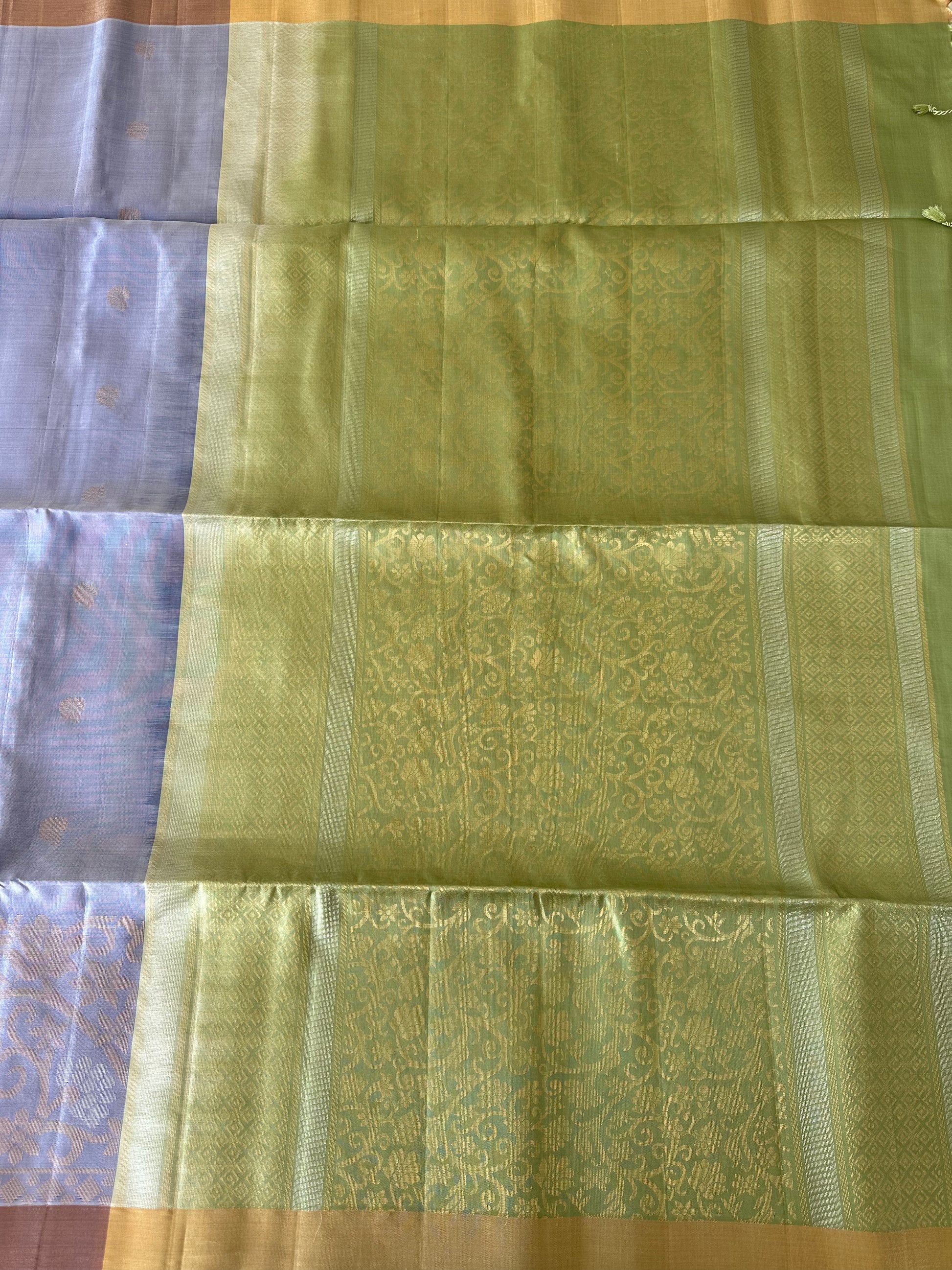 Light Grey & Green Kanjivaram Pure Soft Silk Saree