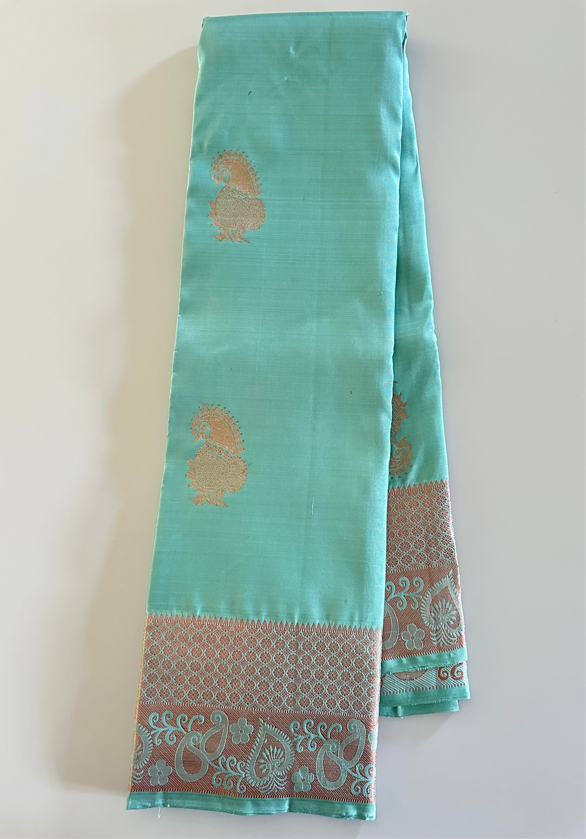 Minty Turquoise Kanjivaram Pure Silk Saree